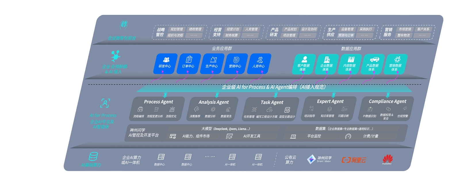 端到端的一站式AI工作空间深度融合了从企业战略规划到日常经营的全流程业务板块,,定向解决车企内部领域多、、、部门多、、、、链条长、、、、场景碎片化等难题,,,,支持车企快速构建以AI为核心的生产力写作体系,,,,实现任务执行与AI能力的无缝集成与交互